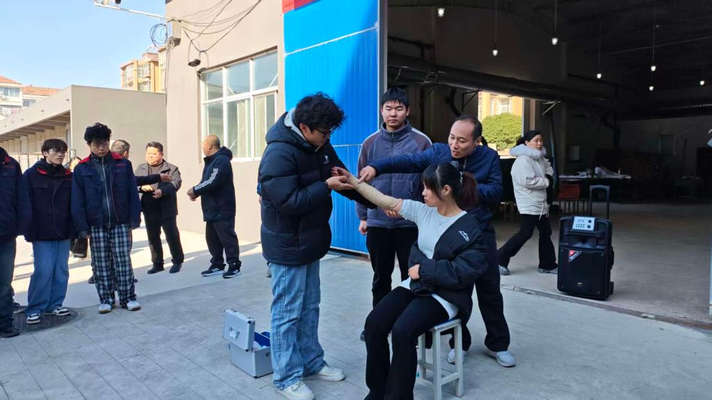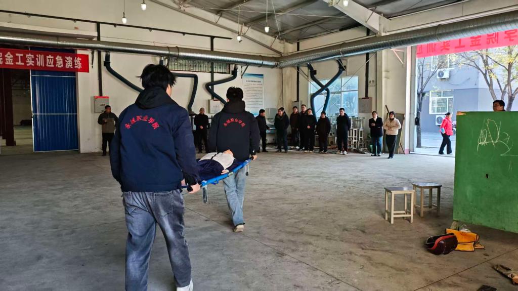 为强化师生的安全应急处置能力,夯实实训室安全基础,11月19日上午,我院实训中心在焊工车间成功举行了触电应急救援演练。实训中心全体人员、机电系部分教师、学生代表齐聚现场,围绕触电处理、心肺复苏、外伤包扎三项内容,开展了一场规范有序、注重实效的实操演练。