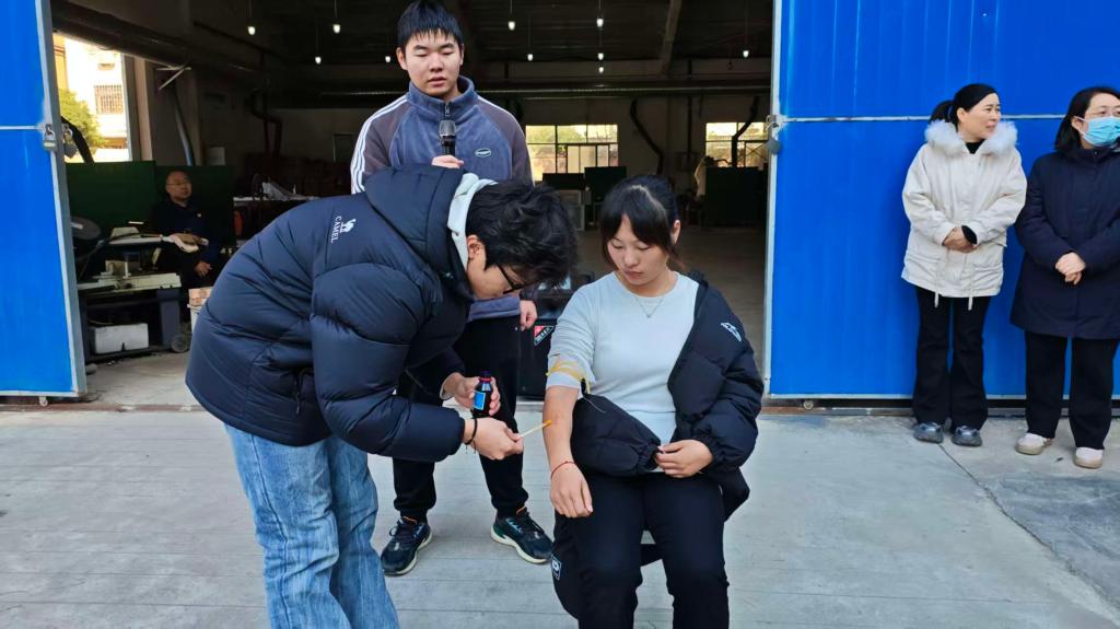 外伤包扎:掌握基础救护技能。针对实验室常见的割伤、烫伤,医护人员讲解了止血、包扎、固定等基本原则。师生们随后利用绷带、三角巾进行了施救练习,熟练掌握了环形包扎、螺旋包扎等基础技能,为应对意外伤害打下了坚实基础。